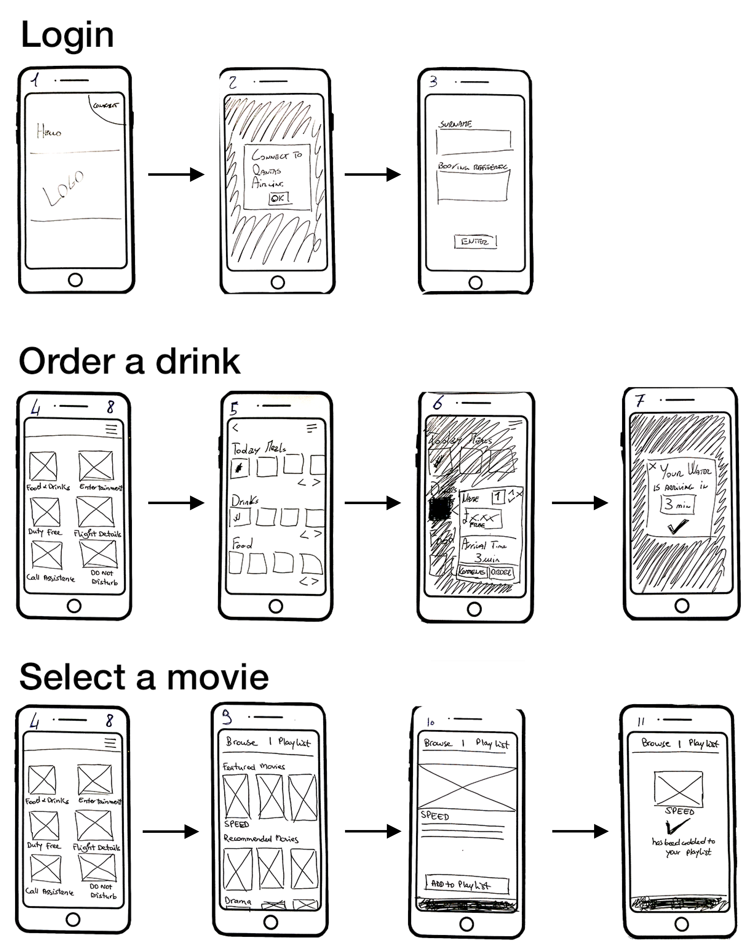 For this concept project, I worked with a team on an app that would make in-flight services for Qantas Airlines available to passengers on their mobile devices.